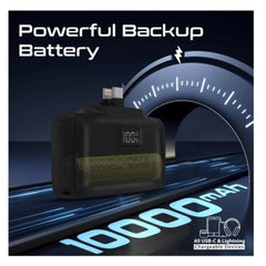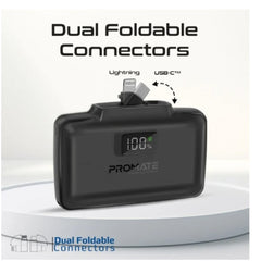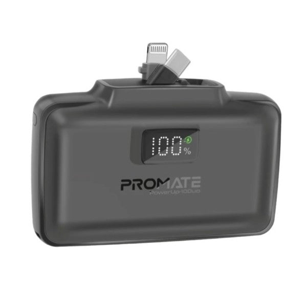 باور بانك بروميت بسعة 10000 مللي أمبير، فائق الصغر، سريع الشحن، مزود بموصل USB-C مزدوج قابل للطي وموصل Lightning، موديل POWERUP-10DUO - أسود