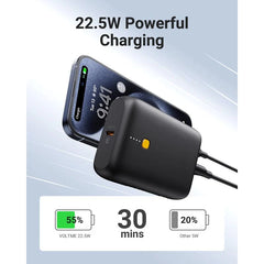 Dual Charging Ports: USB-C PD (20W) & USB-A (22.5W) for charging two devices simultaneously.