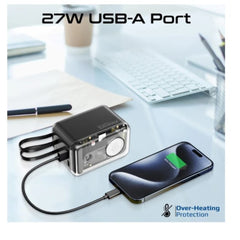 استمتع بالشحن أينما كنت مع بروميت مافريك-20 ، بنك الطاقة عالي السعة 20000 مللي أمبير، المصمم خصيصًا لعشاق التكنولوجيا ومستخدمي الأجهزة المتعددة. بفضل كابلات USB-C وLightning المدمجة ، لن تحتاج إلى أسلاك إضافية، بينما يتيح منفذ USB-C بتقنية الشحن السريع PD بقدرة 65 واط ومنفذ USB-A بقدرة 27 واط شحنًا سريعًا لأجهزة متعددة في وقت واحد. كما يوفر شاحن Apple Watch المخصص بقدرة 3 واط مزيدًا من الراحة لأجهزتك القابلة للارتداء.