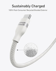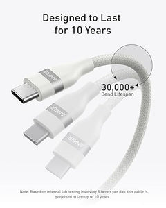 كابل أنكر نانو USB-C إلى USB-C - 240 واط، 3 أقدام، مضفر معاد تصنيعه، أبيض (A82E2021)
