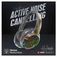 سماعات رأس لاسلكية ستيريو عالية الدقة من بروميت ترانس تييون مع خاصية إلغاء الضوضاء النشطة وإضاءة RGB - لون رمادي معدني
