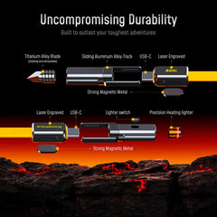 Meet the AOHI Prometheus 3-in-1 Titanium EDC Tool Cable, the world’s first multifunctional EDC cable designed to charge, ignite, cut, and sync data—all in one compact, ultra-durable tool. Built from aerospace-grade titanium alloy, Prometheus is your pocket-sized powerhouse, ready for daily use, emergencies, and outdoor adventures.