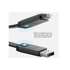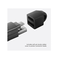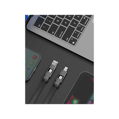 - الميزات الخاصة: أربعة أنواع موصلات قابلة للتبديل: USB-A، USB-C، USB-C، ولايتنينج، دعم الشحن السريع بقوة 60 واط لإعادة الشحن السريع، تصميم مجدول من النايلون لمتانة معززة، أضلاع قبضة مضادة للانزلاق للتعامل الآمن