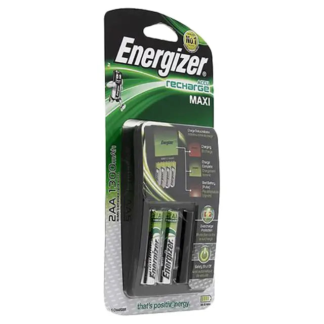 حافظ على شحن أجهزتك بكفاءة ووفر وقتك مع شاحن بطاريات إنرجيزر القابلة لإعادة الشحن AA/AAA ماكسي (CHVCM4.0) . مصمم لراحة الاستخدام والأداء العالي، يجعل هذا الشاحن إعادة شحن بطاريات NiMH عملية سريعة وآمنة وخالية من المتاعب . مثالي للحاسبات، والمصابيح، والكاميرات، وغيرها من الأجهزة الإلكترونية الصغيرة ، فهو يجمع بين المواد المتينة، والشحن السريع، وسهولة حمله .
