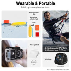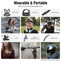 حزام رأس وصدر قابلان للتعديل يناسبان جميع الأحجام. مثالي لالتقاط صور غامرة من منظور الشخص الأول أثناء ركوب الأمواج، والتزلج على الجليد، وركوب الدراجات، والتزلج على الجليد ، وغيرها من رياضات الحركة.