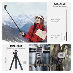 تتيح لك عصا السيلفي خفيفة الوزن التقاط مقاطع فيديو للسفر وصور سيلفي بزاوية واسعة بكل سهولة.