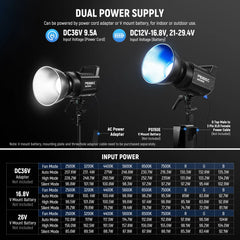 التحكم الكامل في RGB وثنائي اللون: اضبط اللون من 0°–360° ودرجة حرارة اللون من 3200K إلى 5600K لإنشاء أي مزاج أو تأثير إضاءة.