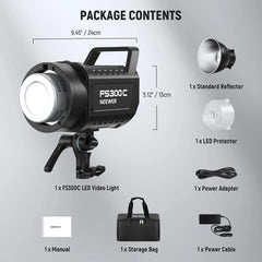 قوة إخراج 300 وات: توفر مصابيح LED COB عالية الكثافة إضاءة ثابتة ومشرقة لالتقاط الصور والفيديو.