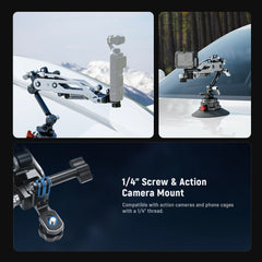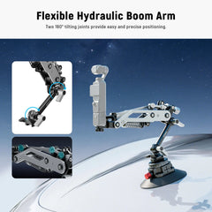 Action Camera Mount with Hydraulic Boom Arm and Suction Cup
