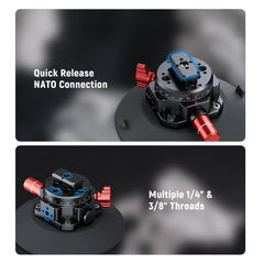 Supports 1/4" threaded devices weighing 5.3–18 oz / 150–500 g