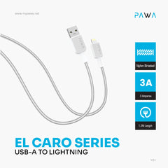 كابل Pawa El Caro Series USB-A إلى Lightning Premium Braided باللون الأبيض (PW-120BD3AL-WH)
