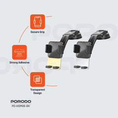 The Porodo Crystal Mount Extended Base – Black (PD-HSM06-BK) is the perfect balance of simplicity, strength, and style. With its secure grip, strong adhesive, wide compatibility, and transparent modern design, it provides a reliable hands-free solution for daily smartphone use across all environments.