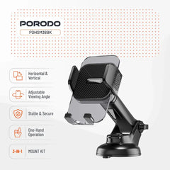Porodo 3-in-1 Mount Kit Multi-Functional Phone Holder – Black | PDHSM38BK