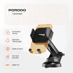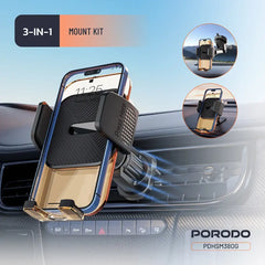 Upgrade your driving, workspace, and everyday phone usage with the Porodo 3-in-1 Mount Kit Multi-Functional Phone Holder (PDHSM38OG) — a versatile, secure, and stylish mounting solution designed for maximum stability, convenience, and one-handed operation. Built to support modern smartphones from 4.7 to 7.2 inches, this premium phone mount delivers rock-solid performance whether you're on the road, at work, or at home.