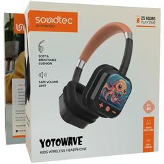 Give your child a fun, safe, and comfortable listening experience with the Porodo Soundtec Yotowave Kids Wireless Headphones, specially designed to protect young ears while delivering clear, enjoyable sound. With a vibrant orange and black design, advanced Bluetooth 5.4 connectivity, and an industry-standard 85dB safe volume limit, these headphones are the perfect choice for learning, entertainment, travel, and everyday fun.