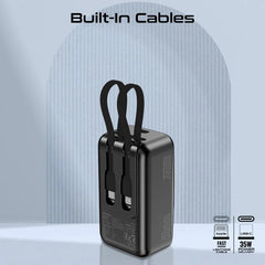 بنك طاقة بروميت مافريكس مزود بكابل USB-C وكابل لايتنينج مدمجين - 35 واط / 10000 مللي أمبير / أسود فانتوم