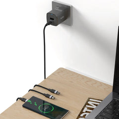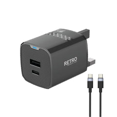 PW-TR225UKT-BK | كابل باوا ريترو ٢٥ واط مع منفذ PD+QC، قابس بريطاني، وكابل من النوع C إلى النوع C | أسود
