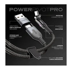 Power Pivot Rotating Connector for Uninterrupted UseThe Statik Power Pivot Pro Cable features a unique rotating connector that can pivot and spin, allowing you to use your device comfortably in either portrait or landscape mode without interference.This flexibility ensures that the cable stays out of your way during use, enhancing your overall experience.Durable Fray-Proof ConstructionDesigned for maximum durability, the Power Pivot Pro Cable is built with reinforced, military-grade nylon braiding.This strong material helps prevent fraying, ensuring your cable remains intact and fully functional for extended use.Additionally, the longer rubber transition at the cable ends helps prevent the most common points of wear and tear.High-Speed Data Transfer and Secure ChargingThis cable supports rapid data transfer, making it easy to move photos, videos, music, and other important files quickly between devices.It also ensures fast charging for your phone or other USB-C devices while protecting your battery, files, and devices with built-in safety features that prevent overheating and overcharging.Convenient Charging Light IndicatorThe LED light at the end of the Statik Power Pivot Pro Cable provides a clear indication of when your device is charging.This feature eliminates the need to constantly check your phone’s battery, giving you a simple way to monitor your charging progress at a glance.Exclusive Statik Design for a Premium ExperienceThe Power Pivot Pro Cable showcases the unique design and craftsmanship that Statik is known for.With its exclusive features and high-quality build, this cable offers a charging solution unlike anything else on the market, making it a must-have for anyone who values both style and function. |