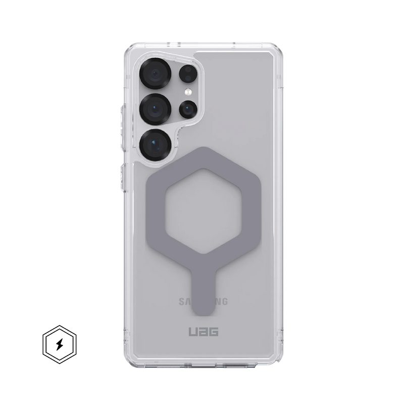 The Plyo Pro Series Galaxy S25 Ultra Case offers stylish, everyday protection with a sleek and lightweight design. This Galaxy S25 Ultra case features a TPU shock-absorbing frame combined with a durable polycarbonate backplate, providing robust protection without the bulk. The signature UAG armor shell and impact-resistant soft core protect your device from drops and impacts, while scratch-resistant skid pads and air-soft corners add extra cushioning for enhanced safety. With anti-yellowing technology, the Plyo Pro Series maintains lasting clarity, allowing your phone's true color to shine. Our integrated magnet module locks your device securely in place when using wireless chargers or other magnetic accessories.
