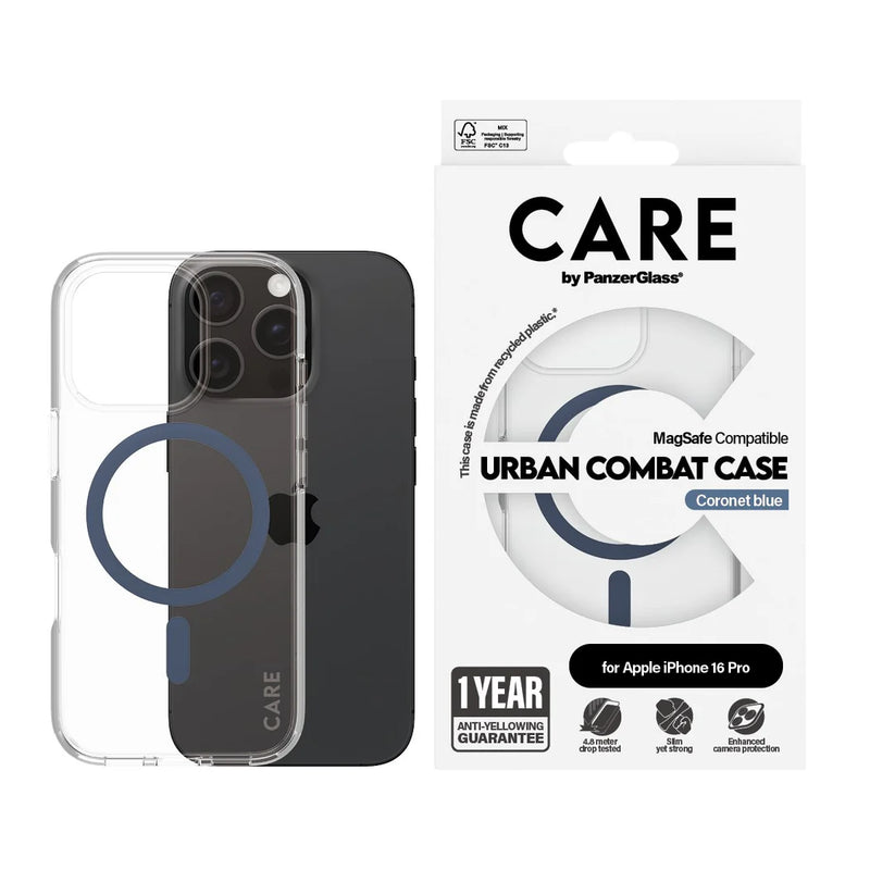 CARE by PanzerGlass Urban Combat Case Transparent Blue MagSafe iPhone 16 Pro