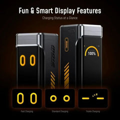 Stay informed with the high-definition smart display, showing battery level, charging status, and dynamic power distribution across both ports. Intelligent output adjustment and 3-stage smart charging with LED indicators and animated visuals add both efficiency and a touch of personality to your charging experience.