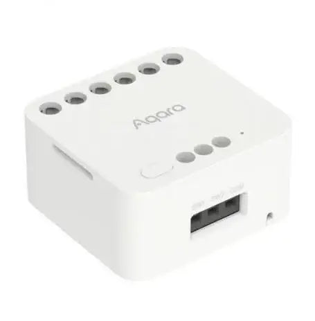 Aqara Dual Relay Module T2 is a relay control module based on the Zigbee wireless communication protocol, designed to control the power on and off of devices. This product can switch between dry/wet contact modes using a connecting wire, thereby controlling other dry contact devices such as motors and garage doors. App remote control, timing control, power statistics, and other functions can be achieved through an Aqara hub. It is also compatible with HomeKit allowing for quick control via the Home app.