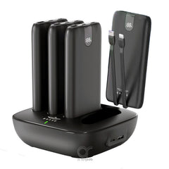 ⚡ 4-in-1 Charging Station: Includes four 10000mAh portable power banks with a shared dock—perfect for families, offices, cafés, and travel.