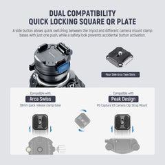Arca-type quick release plates included for rapid camera mounting