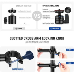 The NEEWER TL253A is a versatile tabletop stand designed for desktop setups, offering stable support for cameras, lights, and other accessories. Its compact and adjustable design makes it ideal for streaming, photography, video recording, or content creation at a desk.