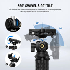 The NEEWER TP34 is a versatile tripod designed for smartphones, action cameras, and compact cameras. Perfect for portraits, vlogging, live streaming, video recording, and filmmaking, it functions as both a desktop tripod and a handheld selfie stick.