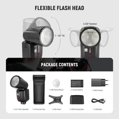 Neewer Z2-S TTL ROUND HEAD FLASH SPEEDLITE WITH 3000mAh LITHIUM BATTERY AND DIFFUSER