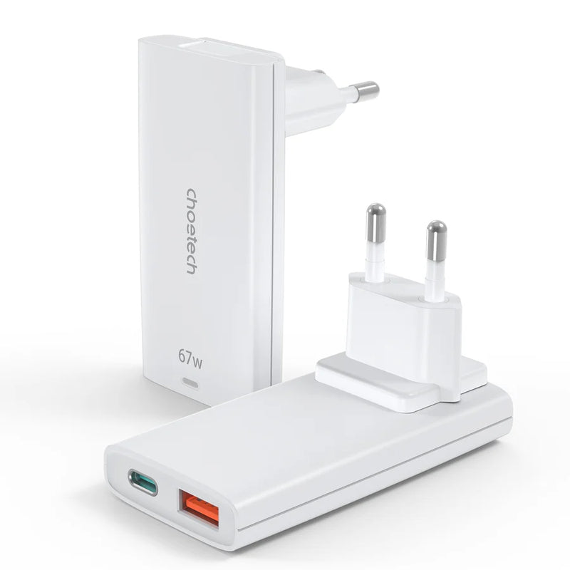 Power up faster, smarter, and more efficiently with the Choetech PD6011 GaN 65W Ultra-Thin Wall Charger, a premium fast-charging solution designed for smartphones, tablets, laptops, and everyday USB-powered devices. Built with cutting-edge GaN (Gallium Nitride) technology, this compact charger delivers powerful performance while staying incredibly slim, lightweight, and cool during operation. Whether you're at home, in the office, or traveling, the PD6011 gives you the speed and reliability you need in a minimal, elegant design.