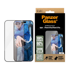 Upgrade your iPhone 15 Plus or 16 Plus with the PanzerGlass® Ultra-Wide Fit Screen Protector and enjoy stylish, sustainable, and superior protection that keeps your phone looking brand new.