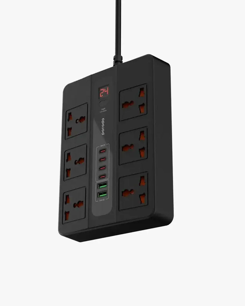 Porodo 6 AC 2 USB-A 24W & 4 USB-C PD 36W Multi-Port Super Hub 2M 3000W UK - Black