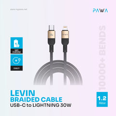 PW-12BDC254-DTBK | PAWA Levin Usb-C To Lightning Braided Cable 1.2M 30W | Desert Black