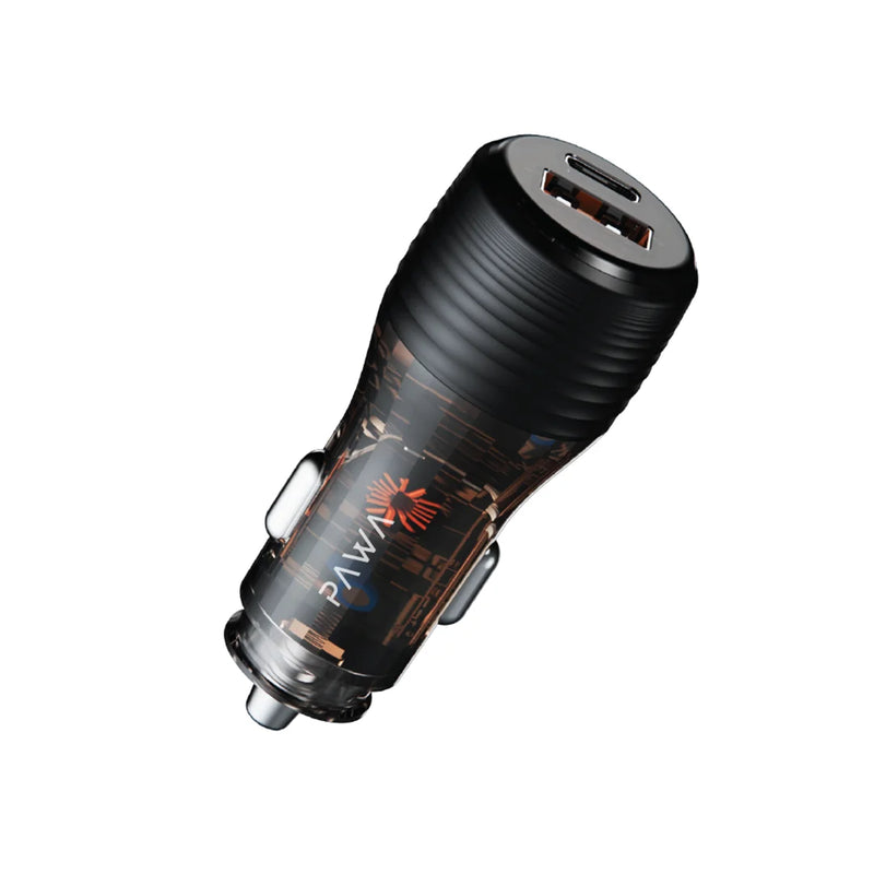 PAWA Solid Dual Port Car Charger PD + QC 51W – Transparent Black (PW-CC51WCA1-TP)