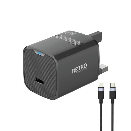 PW-TCR25UKT-BK | PAWA Retro 25W With Type-C Port UK Plug With Type-C To Type-C Cable | Black