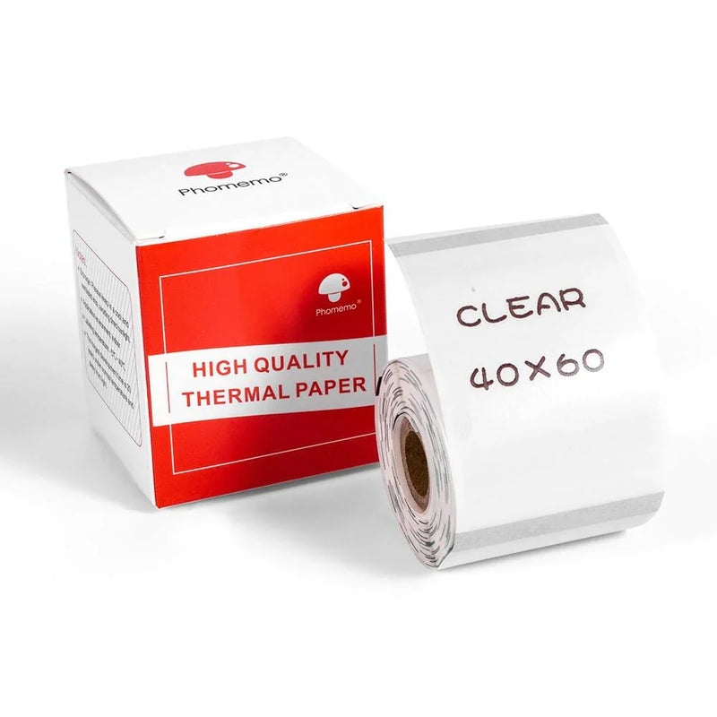 Phomemo Transparent Clear Self-Adhesive Thermal Labels – 40×60mm, 130 Labels/Roll
